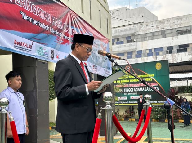 Bertindak sebagai Pembina upacara yaitu Ketua Pengadilan Tinggi Agama Jakarta, Dr. Drs. H. Muh Abduh Sulaeman, S.H., M.H. dalam amanatnya beliau mengingatkan pentingnya nilai-nilai Pancasila sebagai dasar negara dan pandangan hidup bangsa Indonesia. “Pancasila bukan hanya dasar negara, tetapi juga ideologi pemersatu bangsa. Di Tengah tantangan zaman, kita harus terus menanamkan dan mengamalkan nilai-nilai luhur Pancasila dalam kehidupan sehari-hari, baik dalam pelayanan publik maupun dalam bermasyarakat.” Tegas beliau dalan pidatonya.