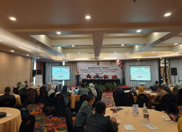 Pengadilan Tinggi Agama (PTA) Jakarta menggelar kegiatan bimbingan teknis (bimtek) Pengelolaan Penerimaan Negara Bukan Pajak (PNBP) Tahun 2025 yang diikuti oleh Panitera, Sekretaris, Bendahara Penerimaan, Kasir dan Pembantu Kasir seluruh Pengadilan Agama di wilayah hukum PTA Jakarta. Acara pembukaan berlangsung dengan khidmat di Sunlike Waterfront Resort and Convention Jakarta pada Selasa 21 Oktober 2025.