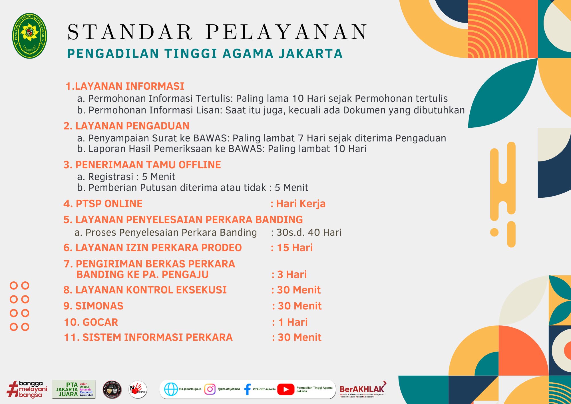 Standar Pelayanan Pengadilan memiliki muatan standar pelayanan publik yang selaras dengan Pasal 21 Undang-Undang No.25 Tahun 2009. Pasal tersebut mengamanatkan harus ada 14 poin yang terdapat dalam setiap standar pelayanan publik, yaitu diantaranya sistem, mekanisme dan prosedur; jangka waktu penyelesaian; biaya/tarif; fasilitas; evaluasi kinerja pelaksana.