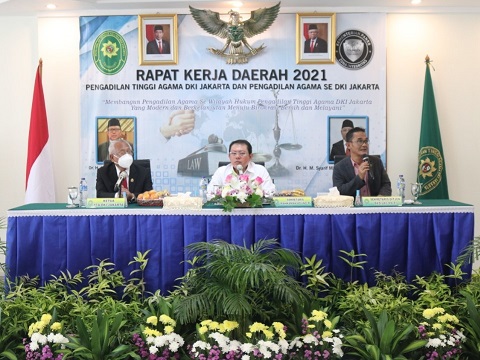 Seperti sudah diberitakan sebelumnya, pada tanggal 9-10 Maret 2021 Pengadilan Tinggi Agama DKI Jakarta menggelar Rapar Kerja Daerah 2021. Dan karena masih pandemi rapat kerja diadakan diadakan di Kantor PTA DKI Jakarta dengan protokol kesehatan yang ketat.